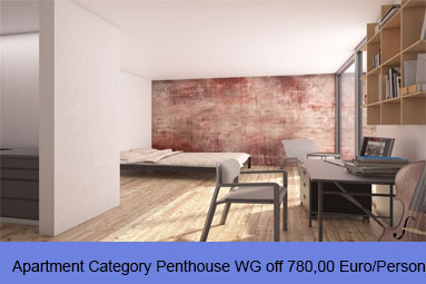 The student residence offers 33 studio apartments and a penthouse apartment as a shared flat for 2 students.
